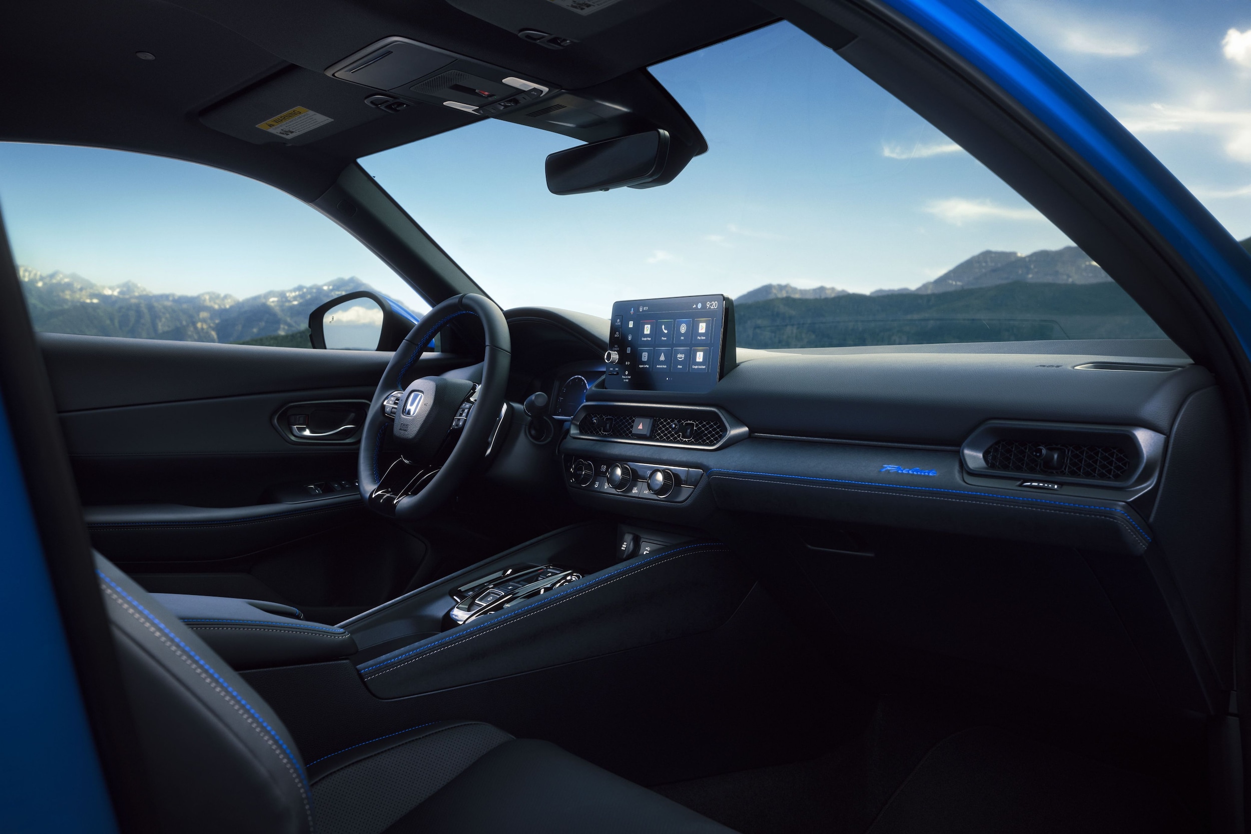 Inside the 2026 Honda Prelude and you'll be greeted by a premium, technology-rich cabin. You can find features like a sporty leather-wrapped steering wheel, along with heated front sport bucket seats with leather trim and blue accent stitching, which offer both comfort and style. You can also make sure all your cargo considerations are met with a 60/40 split folding rear seats, which provide added versatility in the compact hybrid from Honda.