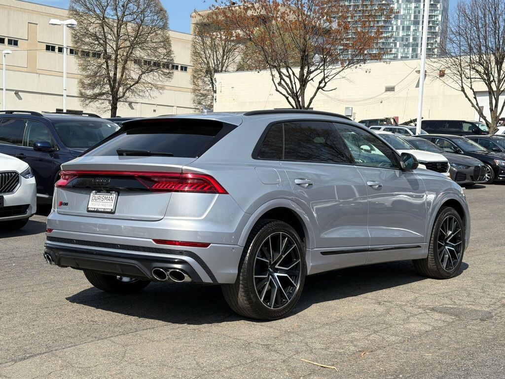 FACTORY WARRANTY, LIKE NEW, DEALER WARRANTY INCLUDED!, 17 Speakers, 4-Wheel Disc Brakes, ABS brakes, Adaptive suspension, Air Conditioning, Alloy wheels, AM/FM radio: SiriusXM, Audi Active Lane Departure Warning, Audi Adaptive Cruise Assist, Audi Guard Protection Kit, Audi Guard Wheel Lock Kit, Audi S Beam - Front & Rear Doors, Audi smartphone interface (Apple CarPlay/Android Auto), Auto High-beam Headlights, Auto-dimming door mirrors, Auto-dimming Rear-View mirror, Auto-leveling suspension, Automatic temperature control, Black Mirror Housings, Black Optic Exterior Package, Black Roof Rails, Brake assist, Bumpers: body-color, Compass, Delay-off headlights, Driver Assistance Package, Driver door bin, Driver vanity mirror, Dual front impact airbags, Dual front side impact airbags, Electronic Stability Control, Emergency communication system: Audi connect CARE, PRIME & PLUS, Four wheel independent suspension, Front anti-roll bar, Front Bucket Seats, Front Center Armrest, Front dual zone A/C, Front fog lights, Front reading lights, Fully automatic headlights, Garage door transmitter: HomeLink, Heated & Ventilated S Sport Seats, Heated door mirrors, Heated front seats, Heated steering wheel, High-Gloss Gray Oak Wood Inlays, Illuminated entry, Intersection Assist, Leather Shift Knob, Leather steering wheel, Low tire pressure warning, Memory seat, Navigation system: Audi MMI Navigation plus with Touch Response, Occupant sensing airbag, Outside temperature display, Overhead airbag, Overhead console, Panic alarm, Passenger door bin, Passenger vanity mirror, Power door mirrors, Power driver seat, Power Liftgate, Power moonroof: Panoramic, Power passenger seat, Power steering, Power windows, Radio data system, Radio: Bang & Olufsen 3D Premium Sound System, Rain sensing wipers, Rear air conditioning, Rear anti-roll bar, Rear dual zone A/C, Rear fog lights, Rear reading lights, Rear seat center armrest, Rear side impact airbag, Rear window defroster, Rear window wiper, Remote keyless entry, Roof rack-Cross Bars, Security system, Speed control, Speed-sensing steering, Split folding rear seat, Spoiler, SQ8 Black Optic Package, Steering wheel memory, Steering wheel mounted audio controls, Tachometer, TBD Axle Ratio, Telescoping steering wheel, Tilt steering wheel, Traction control, Traffic Sign Recognition, Trip computer, Turn signal indicator mirrors, USB Cables, Valcona Leather Seating Surfaces, Variably intermittent wipers, Ventilated front seats, Wheels: 22" Audi Sport 5-V-Spoke Star Design. 2021 Audi SQ8 4.0T Premium Plus quattro quattro Florett Silver Metallic 4.0L V8 Turbocharged DOHC 32V LEV3-ULEV125 500hp