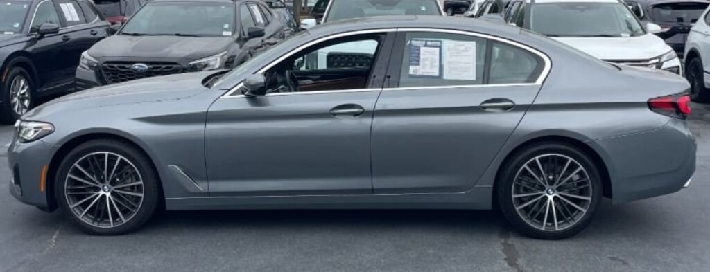 CLEAN CARFAX, FACTORY WARRANTY, BACKUP CAMERA / REAR VIEW CAMERA / REVERSE CAMERA, LANE DEPARTURE WARNING / ROAD DEPARTURE MITIGATION SYSTEM / RDM, BLIND SPOT MONITOR / BLIND SPOT INFORMATION SYSTEM / BSM / BSIM, REAR CROSS TRAFFIC ALERT / CROSS TRAFFIC MONITOR / RCTA, AUTOMATIC HEADLIGHTS, AUTOMATIC HIGH BEAM / AUTO HIGH BEAM / AUTO HIGH-BEAM HEADLIGHTS, POWER MOONROOF / SUNROOF / POWER TILT SLIDING ROOF, NAVIGATION / NAV / GPS, APPLE CARPLAY / ANDROID AUTO, AUTOMATIC CLIMATE CONTROL, DUAL ZONE CLIMATE CONTROL, KEYLESS ENTRY / SMART KEY, PUSH TO START / PUSH BUTTON START / START BUTTON, LEATHER SEATS, HEATED SEATS, HEATED STEERING WHEEL, Cognac Artificial Leather, Connected Package Pro, Navigation System. 2023 BMW 5 Series 540i RWD Gray Metallic 3.0L I6 Turbocharged DOHC 24V LEV3-ULEV70