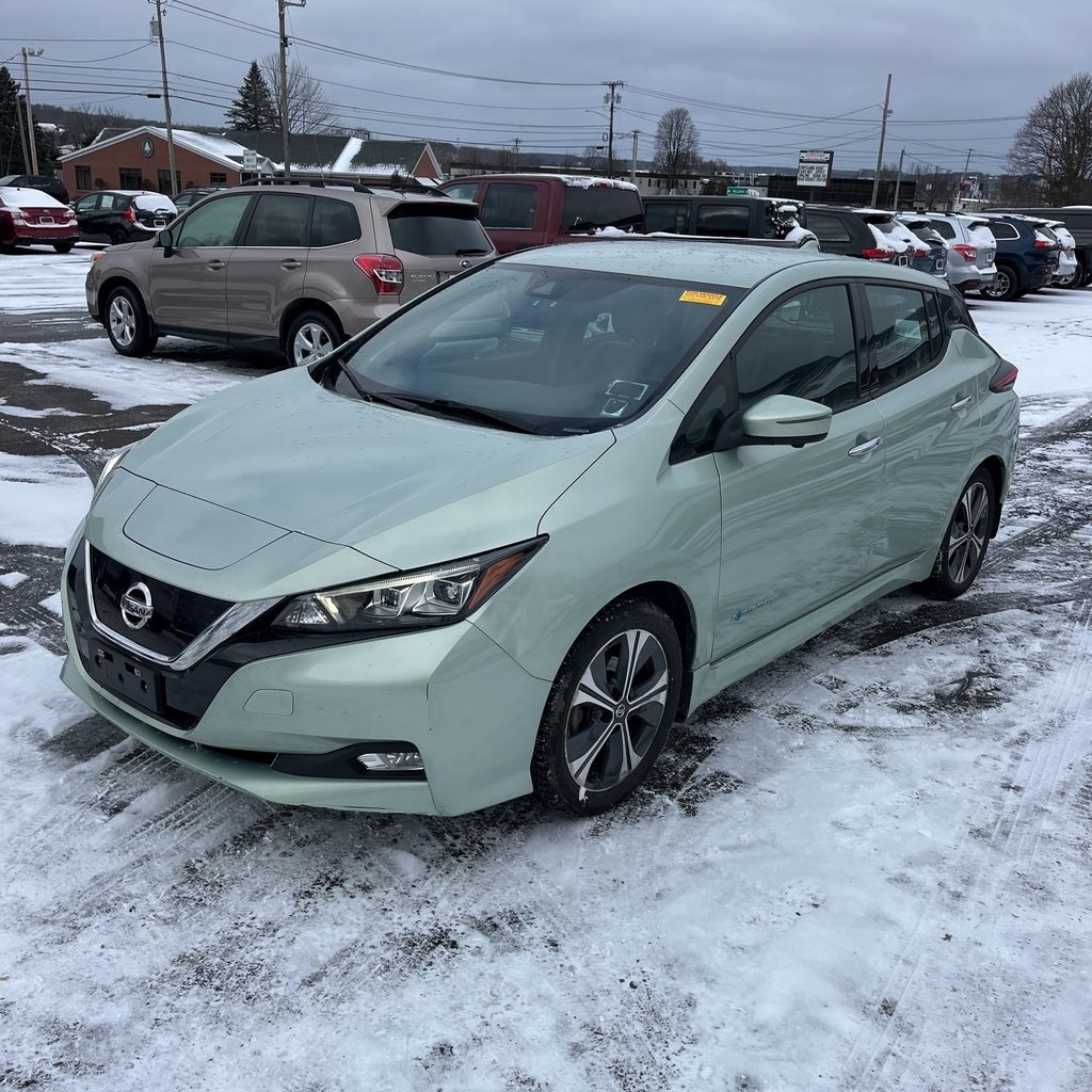 ONE OWNER, CLEAN CARFAX, LIKE NEW, DEALER WARRANTY INCLUDED!, 17" Aluminum Alloy Wheels, 4-Wheel Disc Brakes, 7 Speakers, ABS brakes, Air Conditioning, Alloy wheels, AM/FM radio: SiriusXM, Apple CarPlay/Android Auto, Auto-dimming Rear-View mirror, Automatic Emergency Braking (PAEB), Automatic temperature control, Blind Spot Warning, Brake assist, Bumpers: body-color, Delay-off headlights, Driver door bin, Driver vanity mirror, Dual front impact airbags, Dual front side impact airbags, Electric Parking Brake (EPKB), Electronic Stability Control, Front anti-roll bar, Front Bucket Seats, Front Center Armrest, Front fog lights, Front reading lights, Front wheel independent suspension, Fully automatic headlights, Garage door transmitter: HomeLink, Heated door mirrors, Heated Front Bucket Seats, Heated front seats, Heated steering wheel, High Beam Assist (HBA), Illuminated entry, Intelligent Cruise Control, Intelligent Lane Intervention (I-LI), Kick Plates, Leather steering wheel, Leather-Appointed Seat Trim, Low tire pressure warning, Navigation System, Occupant sensing airbag, Outside temperature display, Overhead airbag, Overhead console, Panic alarm, Passenger door bin, Passenger vanity mirror, Power door mirrors, Power driver seat, Power steering, Power windows, ProPILOT Assist, Radio data system, Radio: NissanConnect w/Navigation/Bose Audio, Rear anti-roll bar, Rear window defroster, Rear window wiper, Remote keyless entry, Security system, SL Technology Package, Speed control, Speed-sensing steering, Splash Guards, Split folding rear seat, Spoiler, Steering Assist, Steering wheel mounted audio controls, Tilt steering wheel, Traction control, Trip computer, Turn signal indicator mirrors, Variably intermittent wipers. 2018 Nissan Leaf SL FWD Jade Frost Electric Motor